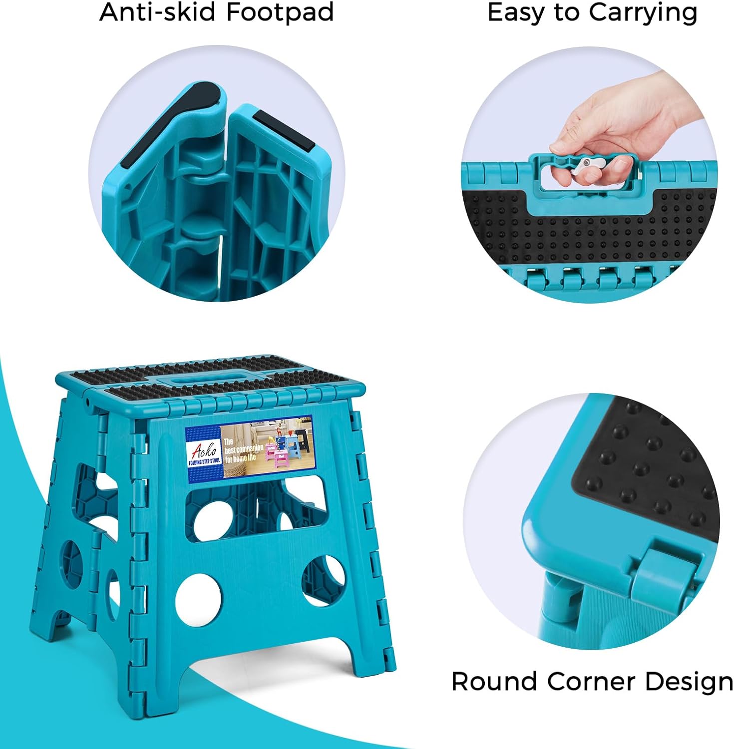 - 【Foldable Step Stool Widely Use】:The beauty of folding stool is, it can be used for multi purposes. Being a portable, it is suitable for classroom, office, bathroom, kitchen, camping, repair, fishing, line up, paint, garden, travel, outdoor and more.