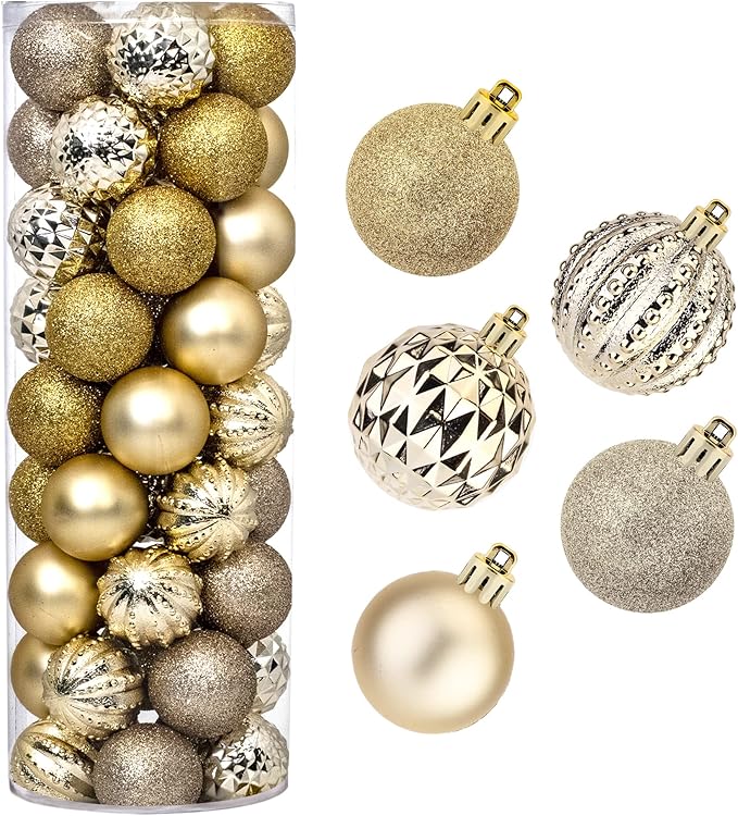 45Pcs 6cm/2.36inch Christmas Balls Glitter Christmas Tree Ornaments Hanging Christmas Home Decorations for Home House Bar Party(Platinum/Gold)
