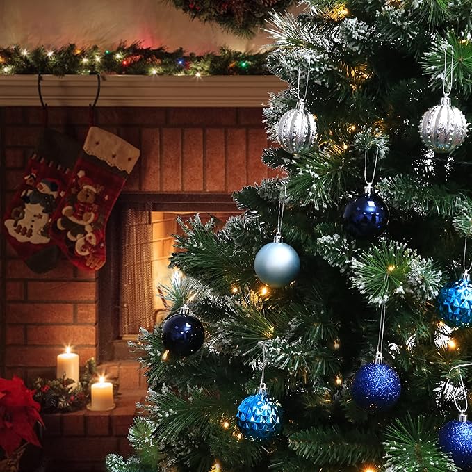 45Pcs 6cm/2.36inch Christmas Balls Glitter Ornaments Set, Shatterproof Plastic Xmas Tree Hanging Ornament, Christmas Decorations Balls for Holiday Festival Wedding House Bar Party(Navy/Blue/Silver)