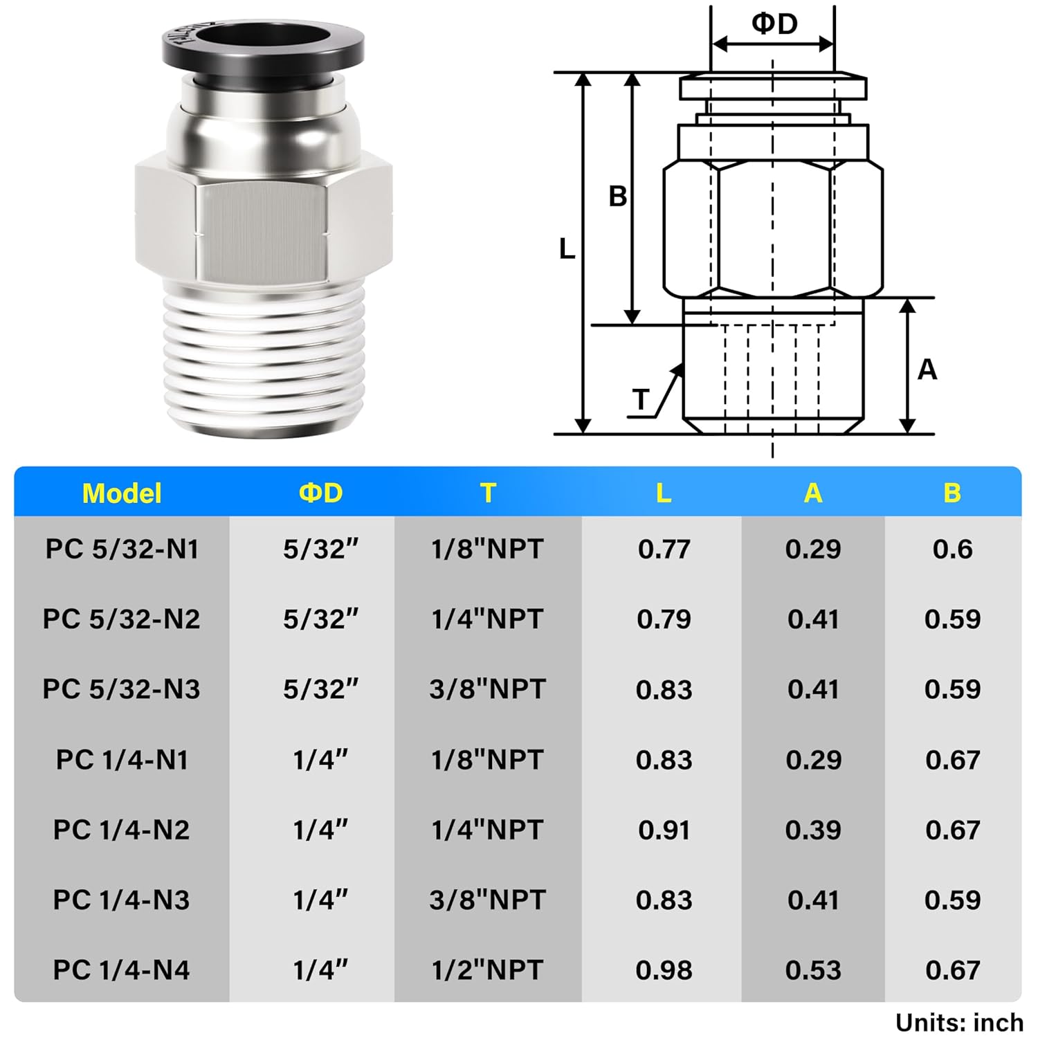 - 【Size】5/32" Tube OD x 1/8" NPT Thread,Notice - NPT Thread Size is a Nominal Pipe Size, and it Does Not represent the actual diameter