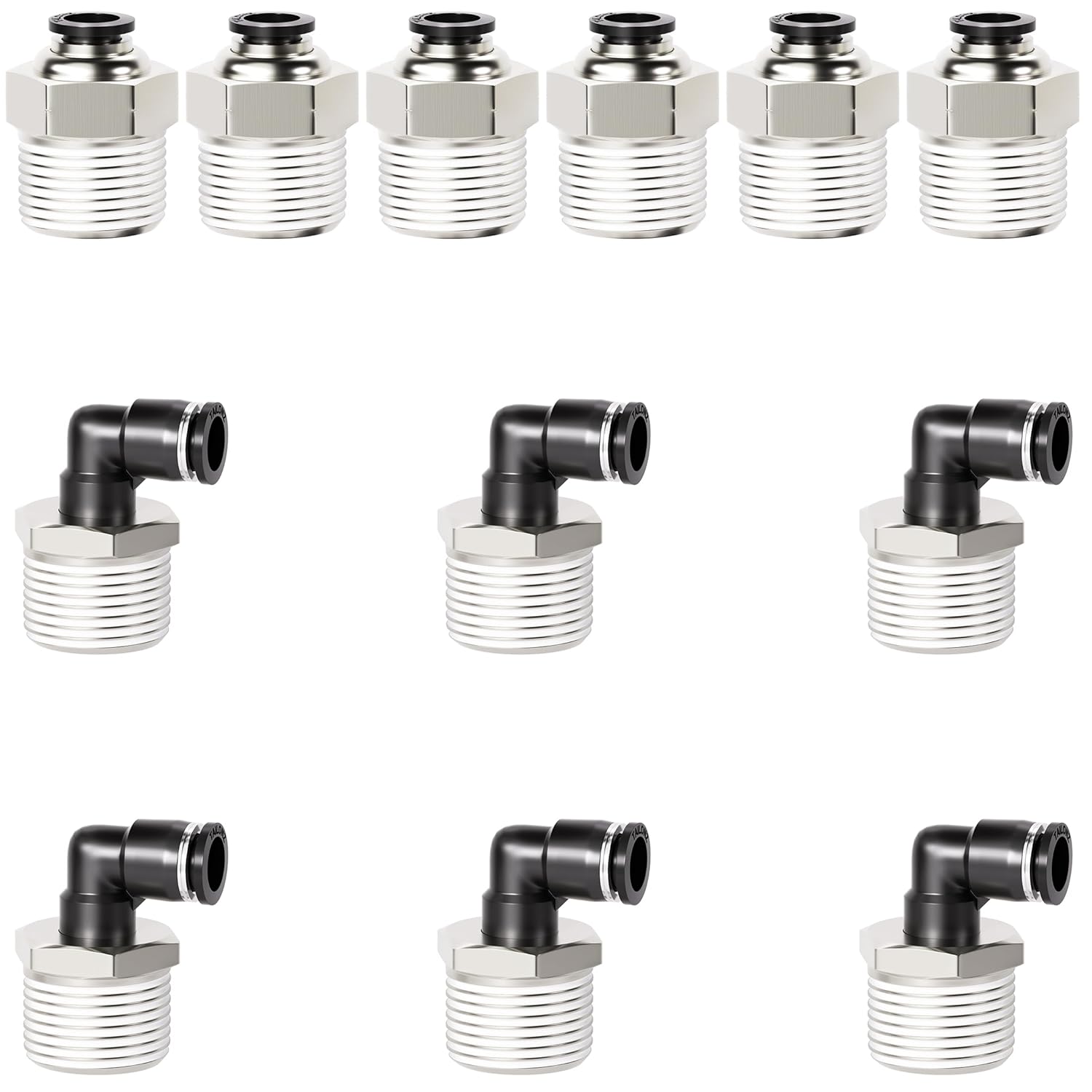 TAILONZ PNEUMATIC Elbow and Straight Combination 1/4 Inch Tube OD x 1/2 Inch NPT Thread Push to Connect Fittings PC-1/4-N4+PL-1/4-N4(Pack of 12)