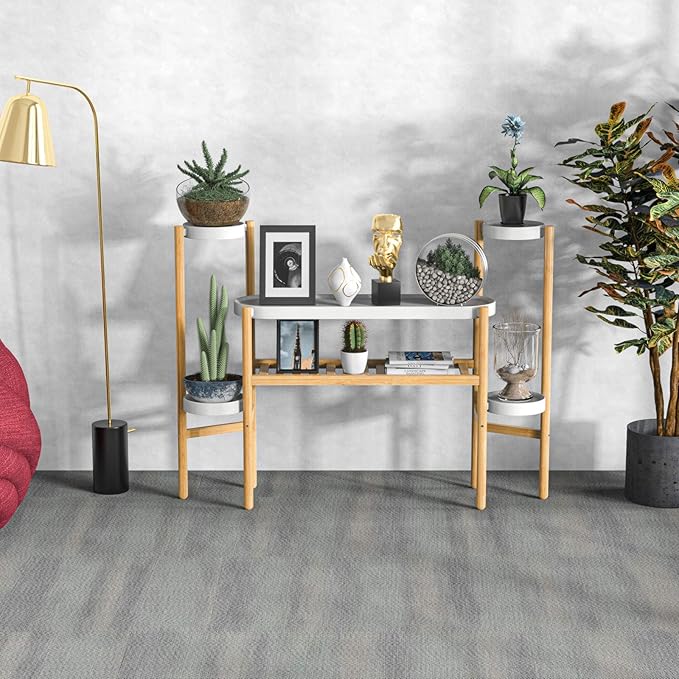 - 【Mulit-Usage】This shelving unit can be a display stand for plants, photos, handicrafts in the living room made it attractive and eye-catching in your home. Match well with your home decor and add a special condition to your living room, balcony, hallway, garden, patios, etc.