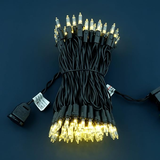 YULETIME 100 Count Clear Warm White Christmas Lights, 33 Feet Black Wire UL Certified Incandescent-Like LED Mini String Lights