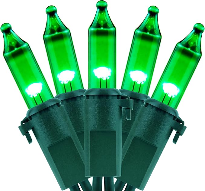 - Specifications: 33' total length of green wire with 100 green glass bulbs, 4" spacing, 4" lead, 4" tail. With a tangle-free design, external lamp lock, and commercial grade 22 AWG wire with a pure copper core, installation is swift and professional. Indoor and outdoor use.