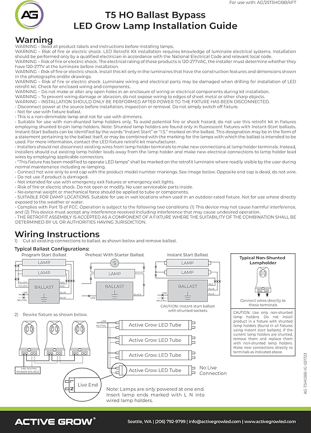 - This 4FT grow light works with any T5 fluorescent light fixture by bypassing the ballast and wiring the lamp holders (requires non-shunted) to one end. REFER TO INSTALLATION VIDEO IN PRODUCT IMAGES.