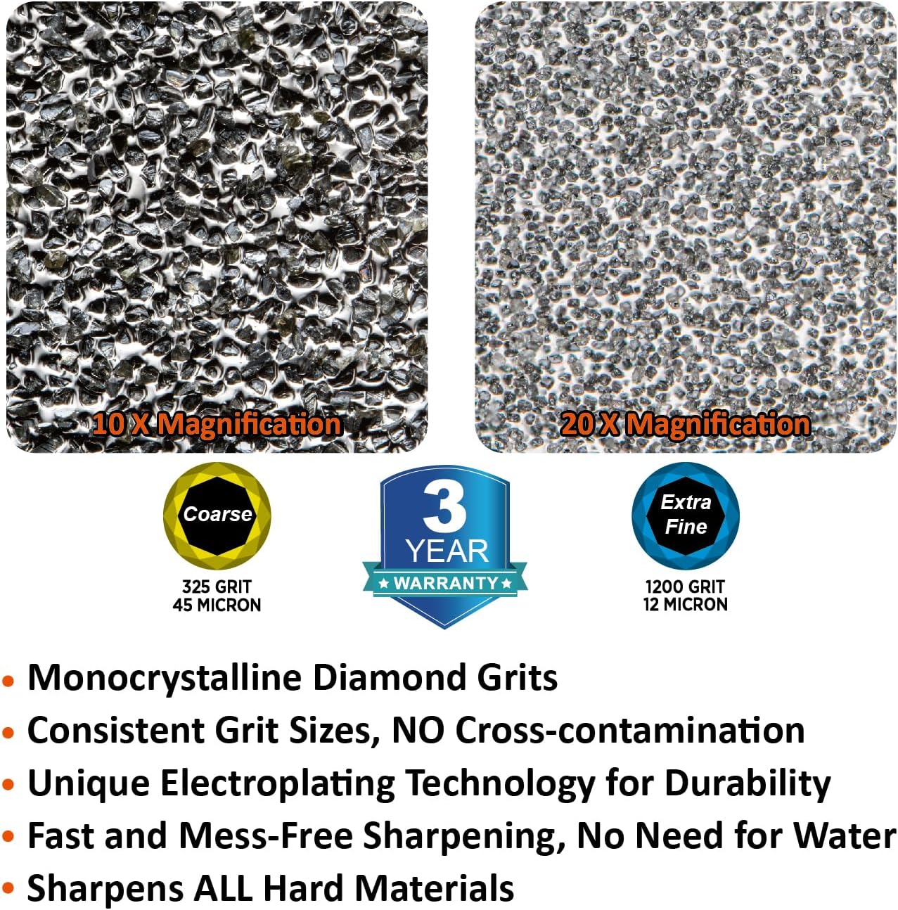 - Durable monocrystalline diamonds coated full tang stainless steel. The diamond coating of this product has a very high hardness. It can sharpen all your tools like new ones.