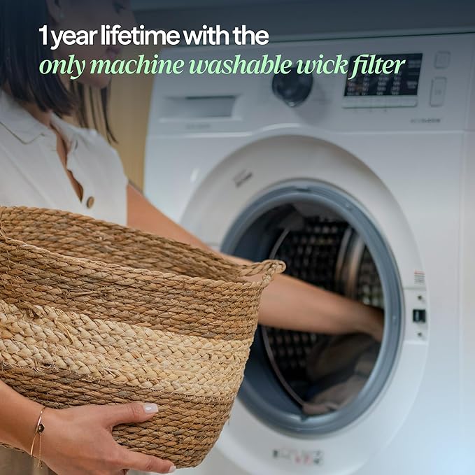 - Long-Lasting Filters, Tap-Water safe: Machine washable wick filter designed for easy care. Air purifier particle & carbon filter lasts up to 9 months for year-round performance. Genuine filter ASINs: B08KTJ7WKS (Particle Air Filter) B08KTJ1RV6 (Humidifier Wick Filter)