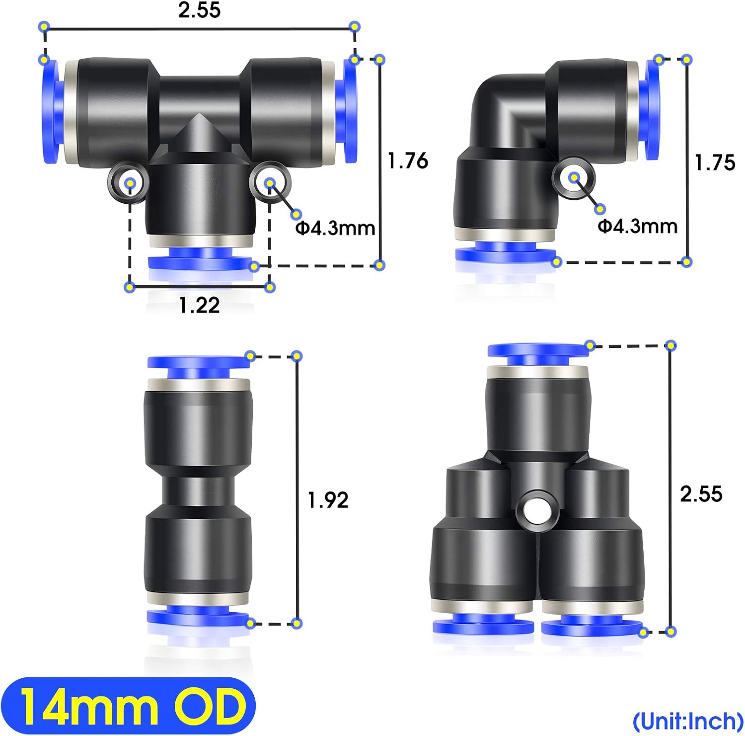 TAILONZ PNEUMATIC 14mm od Push to Connect Fittings Pneumatic Fittings Kit 2 Spliters+2 Elbows+2 tee+2 Straight (8 pcs)