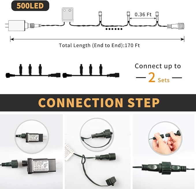 - 165FT/500LED & End To End Expandable:This super long 165ft fairy string lights with 500 individual LED bulbs. And each Christmas light has end-to-end connection that allows up to 3 strands connected together to illuminate a wider range, so the max expandable length is 495 feet, 1500LEDS for larger area. They will brighten up the dark corner for happiness atmosphere inside or outside.