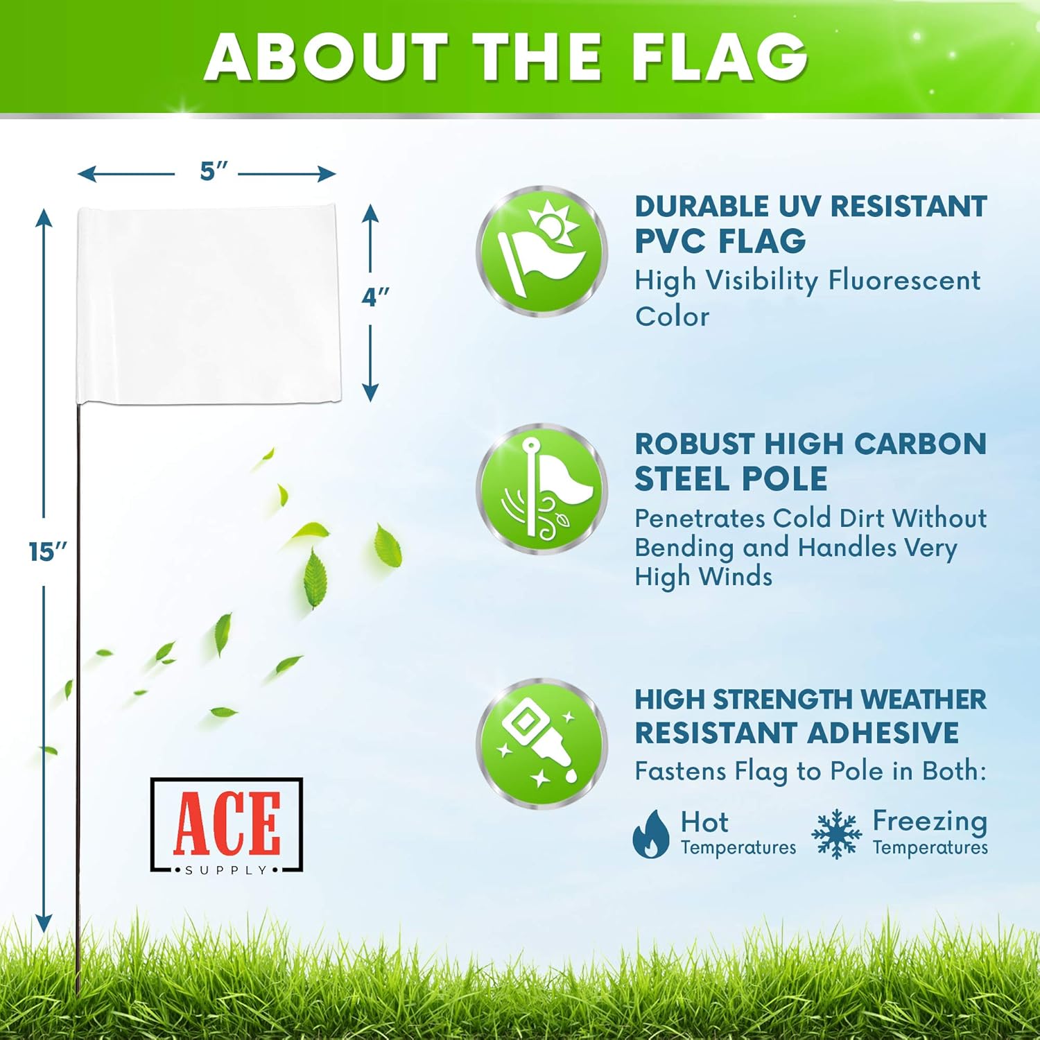 - STURDY & STABLE - Rest easy using these flag markers for yard projects. Our yard marker flags are glued on, making them reliable in high winds. The staff is made of steel for ultimate durability.