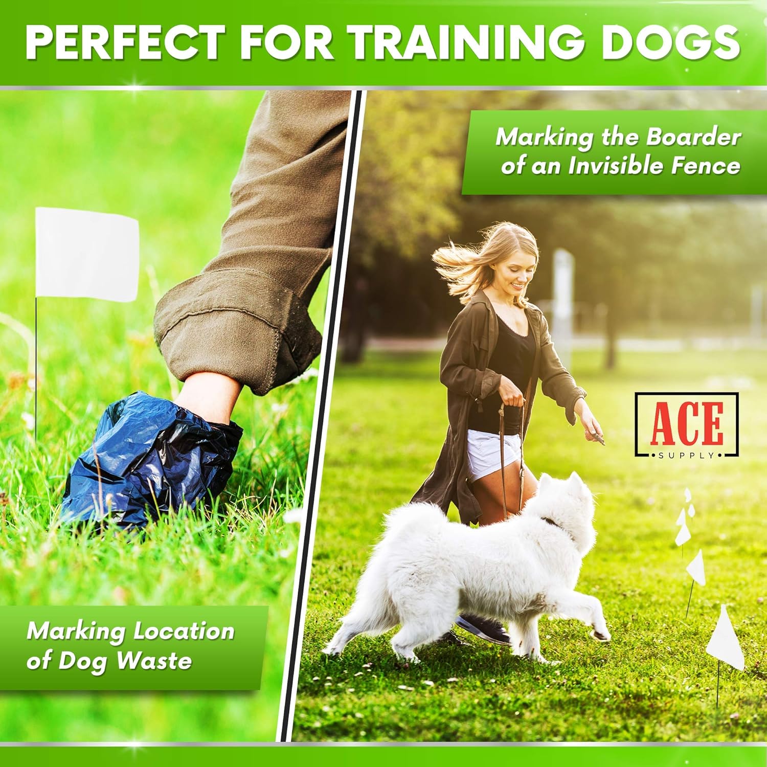 White Flags for Marking Yard - 4x5x15 Inch Invisible Fence Flags for Dogs - 100 Pack - Dog Invisible Fence Training Marker & Boundary Training