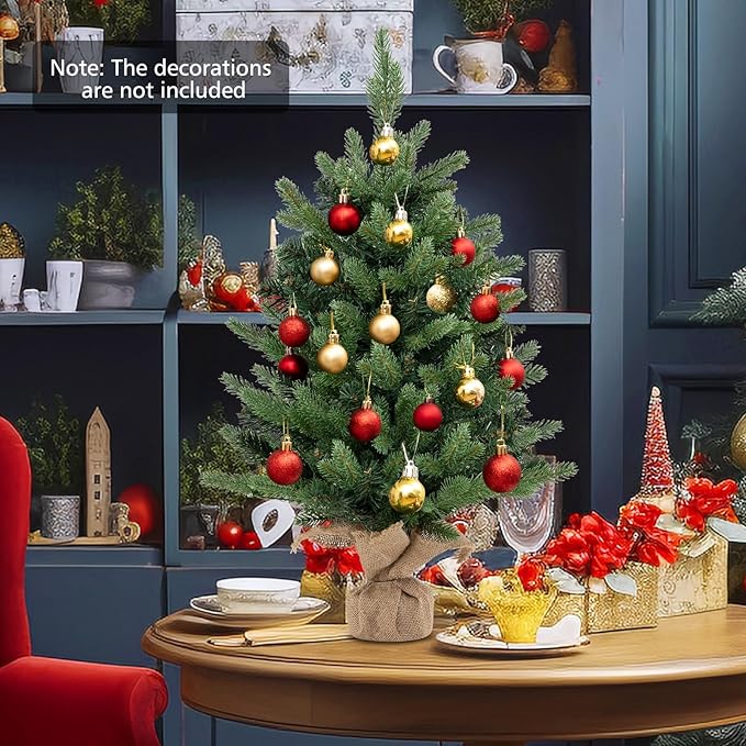 - Decorative Burlap Base: The visual appeal of our tabletop Christmas tree is further enhanced by linen cloth wrapped base. This base is poured with cement to add the stability, preventing any wobbling or tipping over.