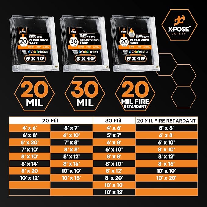 - 20 MIL CLEAR VINYL TARP - See everything with crystal clear vision through this transparent 20 mil thick tarp. You'll be able to see what lies underneath when securing loads, and safely observe the world from your own bubble when using it as a wall or curtain.