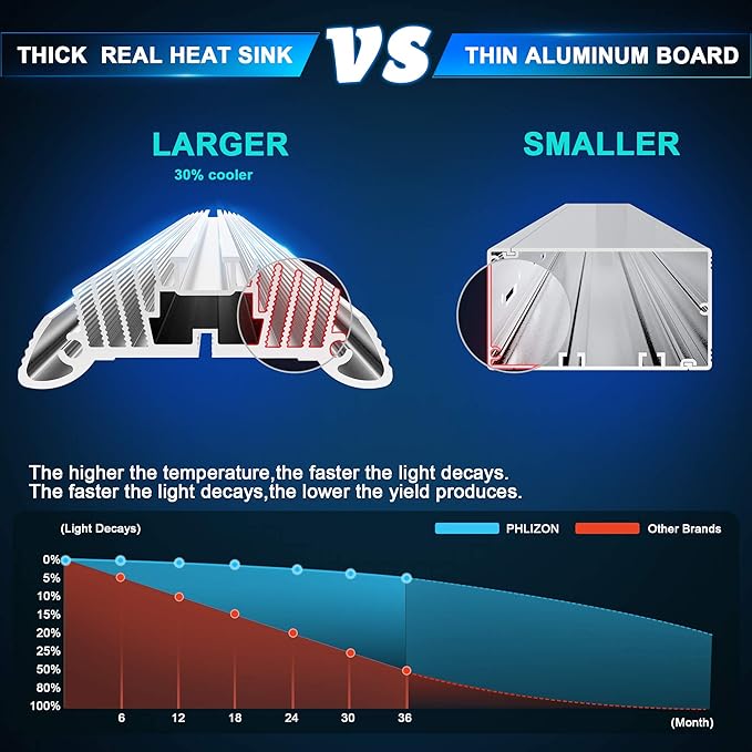 - DIMMABLE AND FULL SPECTRUM- The intensity of light can be adjusted according to the needs of plants. The leds are all new technology SMD leds, It contains 1728pcs SMD led beads , including 1104pcs 3000K leds , 288pcs 6000K leds, 240pcs 660nm red leds,48pcs IR leds,48pcs UV leds.