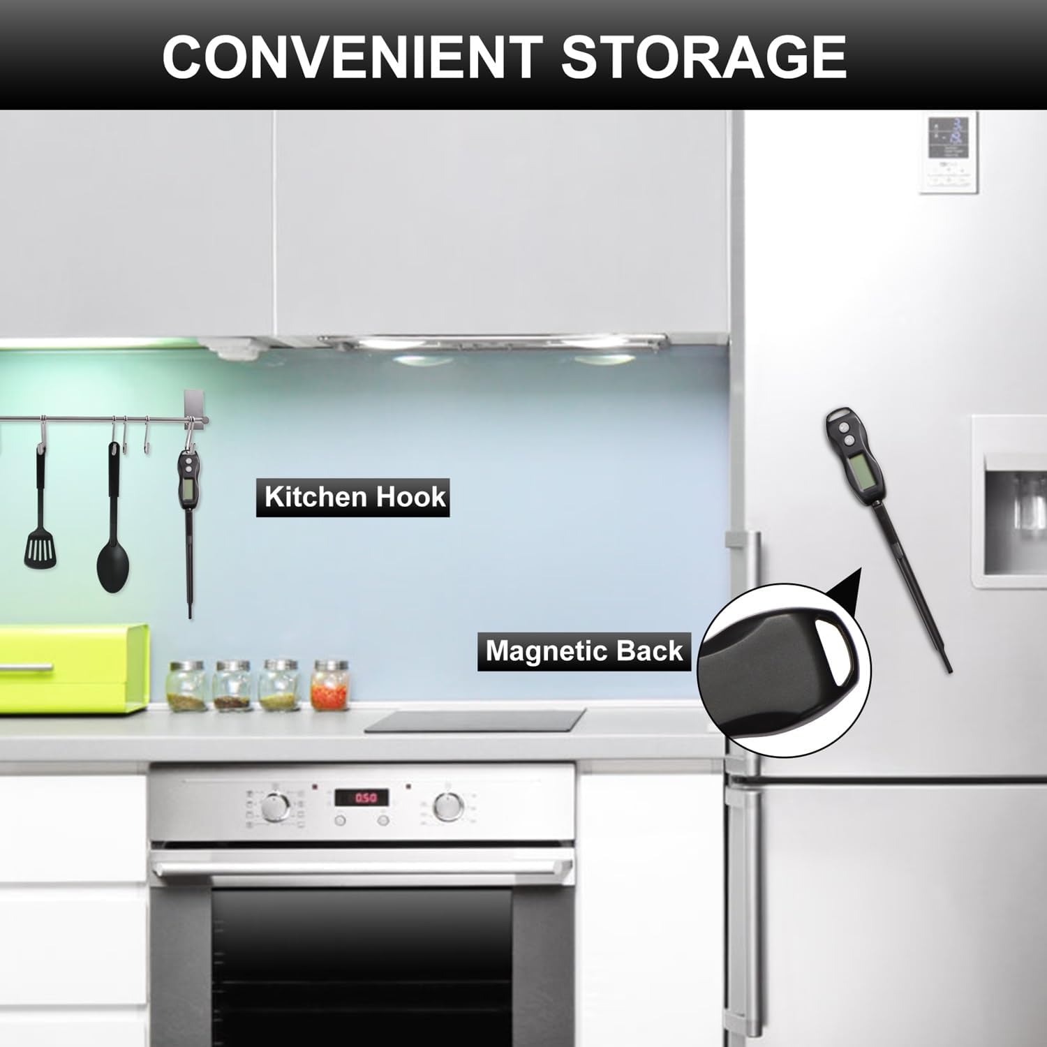- [Easy to use] Simply insert probe into your food or liquid and wait for 2-3 seconds until final temperature is displayed; Built-in Magnet; IP66 Rated Waterproof; Probe length is 5.3 Inches