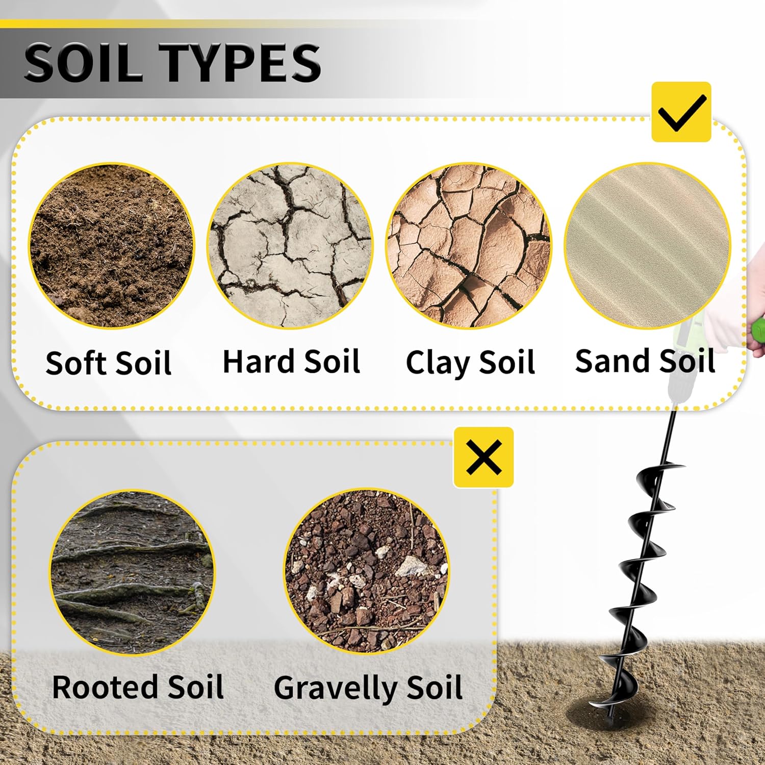 - 【Reduce Planting Time in More Than Half】Say goodbye to back pain and blisters sore hands, the garden auger drill bit is ideal to help you dig hundreds of holes easily in a short time. So, you can finish your planting work or anchor your fence post in a moment. Standing at work possibly with the extended length 24inch.