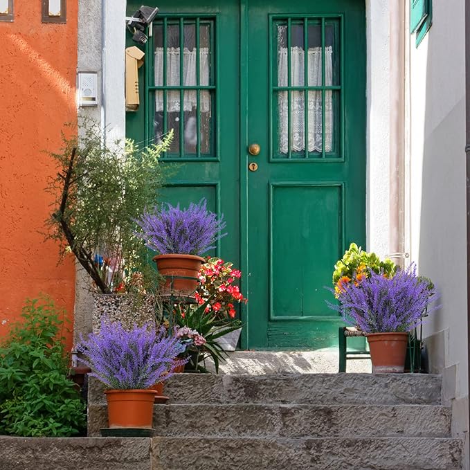 - Artificial flowers for Decoration: Artificial lavender is ideal as wedding bouquet, office wall shelf decoration and party supplies table centerpieces arrangement; "Plant" these uv resistant lavender flowers on the front porch, backyard, garden, balcony
