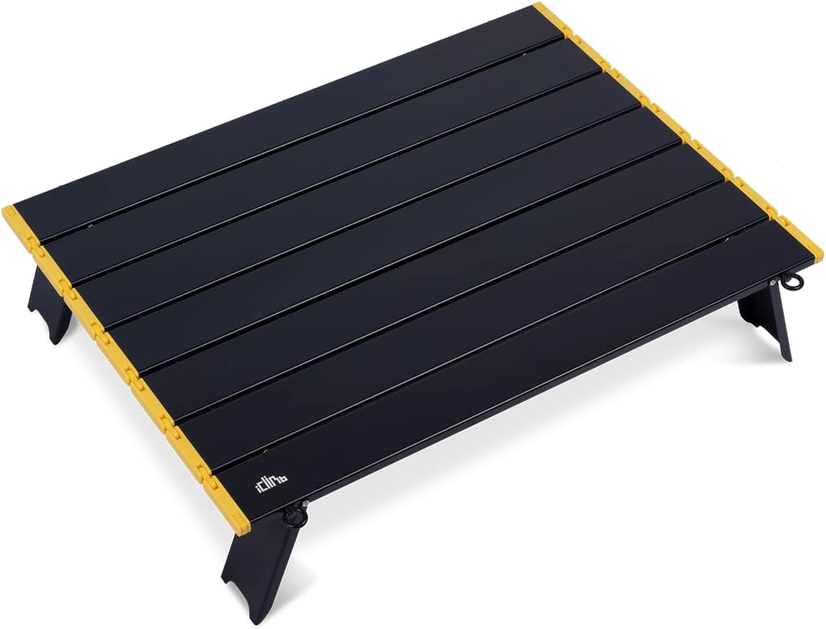 iClimb Ultralight Compact Mini Beach Picnic Folding Alu. Table with Carry Bag, Two Size (Black - L)