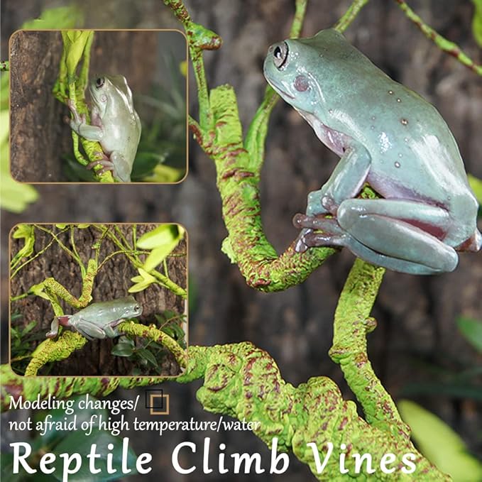 - 【Quality Material】The jungle vines for reptiles are made of iron wire inside and soft PU material outside can be bent at will.They bend to fit your pet's enclosure while offering more support than a conventional vine which can be recessed into the shape you need.The reptile vines and leaves can provide proper exercise for many reptile species.The artificial fake plants for reptiles are made of plastic is better to protect your pet safe