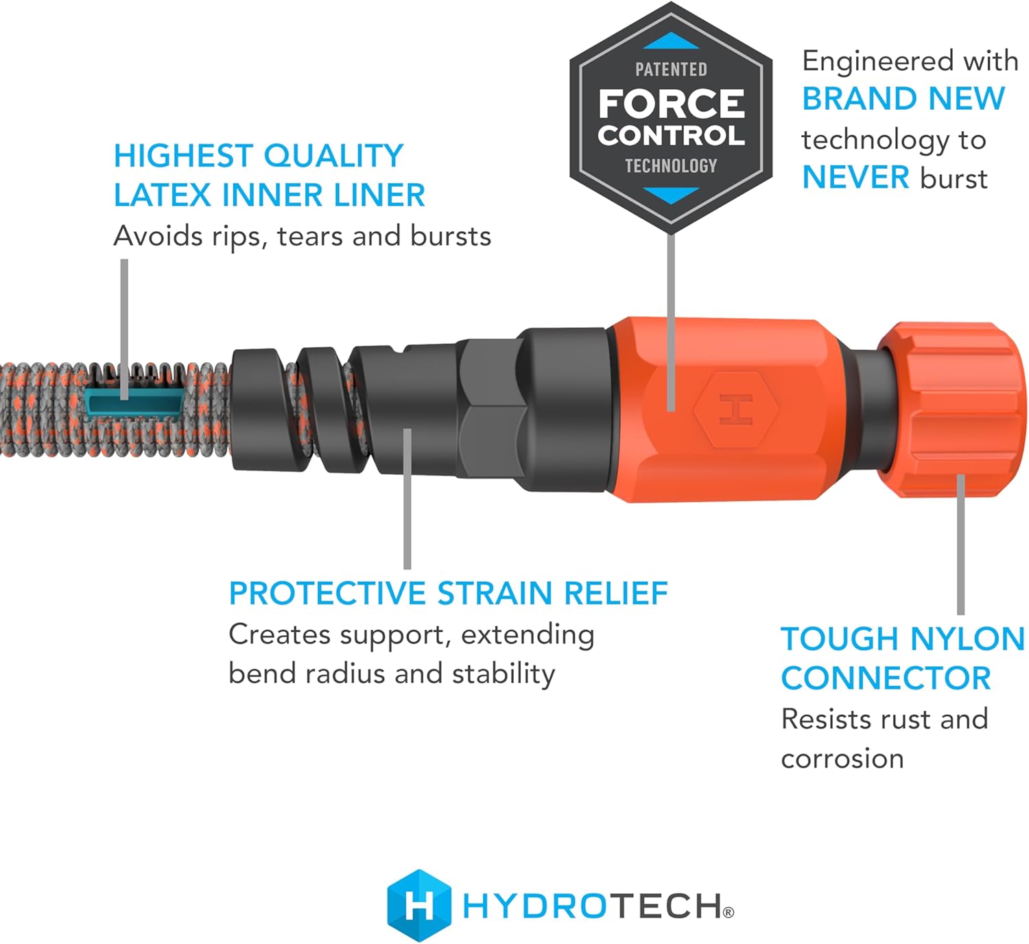 HydroTech 75 ft Expandable Garden Hose - Burst Proof & Lightweight, Flexible Water Hose with Durable Reinfordced Latex Core & Solid Brass Fittings for Lawn, Garden, Car Washing