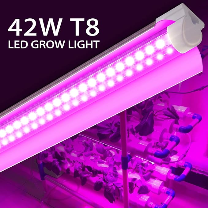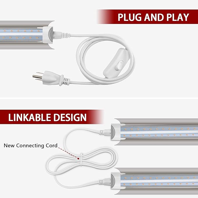 - Mount or Hanging Installation: These indoor grow lights for plants are easy to mount. You can easily hang the light up by included zip ties, or using the clips to fix these grow lights to the ceiling. The T8 grow light can be connected up to 6 lights together with seamless connectors or connector cables by the extendable design