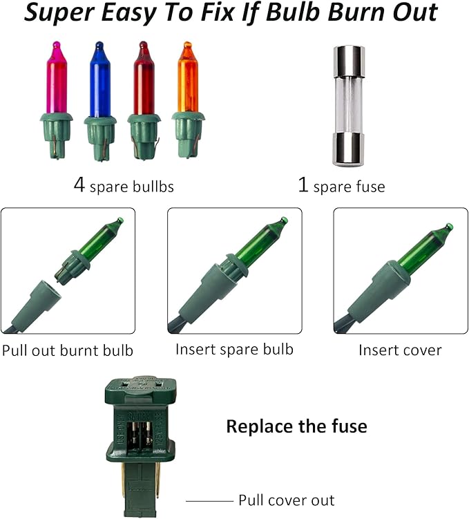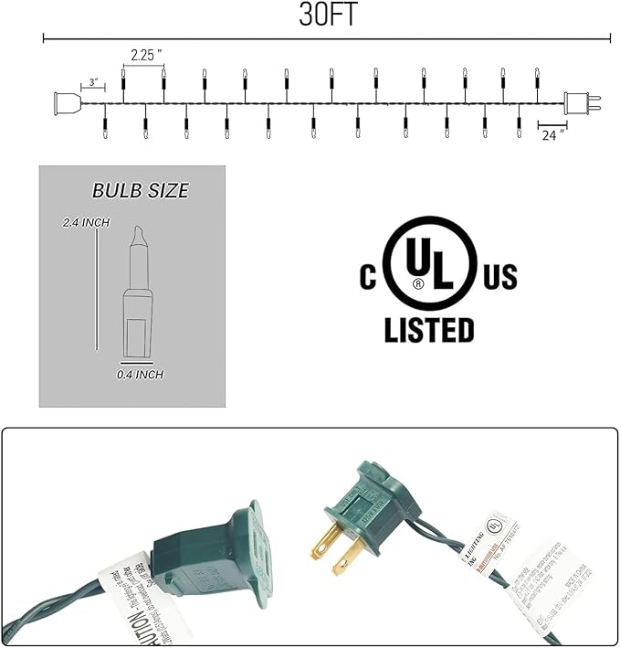 - Package include: 2 x 30 ft string light, 2 x spare fuse, 8 x extra incandescent light bulbs. Christmas mini clear string lighted length is 28 FT, and the leading wire is 2 ft.