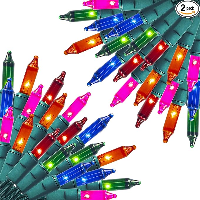 FUNPENY 60FT 300 Count Multi-Color Christmas String Lights, 2 Pack Clear with Green Wire for Indoor/Outdoor Christmas Tree, Xmas Party & Holiday Home Decorations