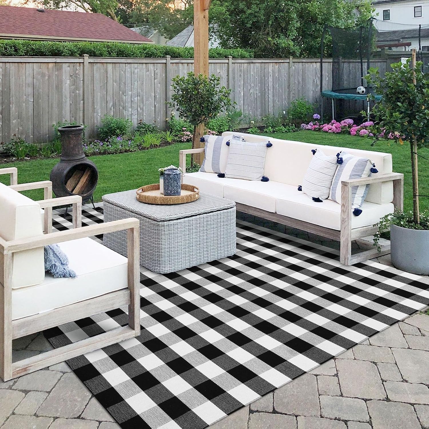IOHOUZE Buffalo Plaid Checkered Rug 8x10 Ft Front Door Mats, Washable Area Rugs for Front Porch Decor, Spring Summer Welcome Mats Outdoor, Black White Rug for Farmhouse/Entryway/Home Entrance