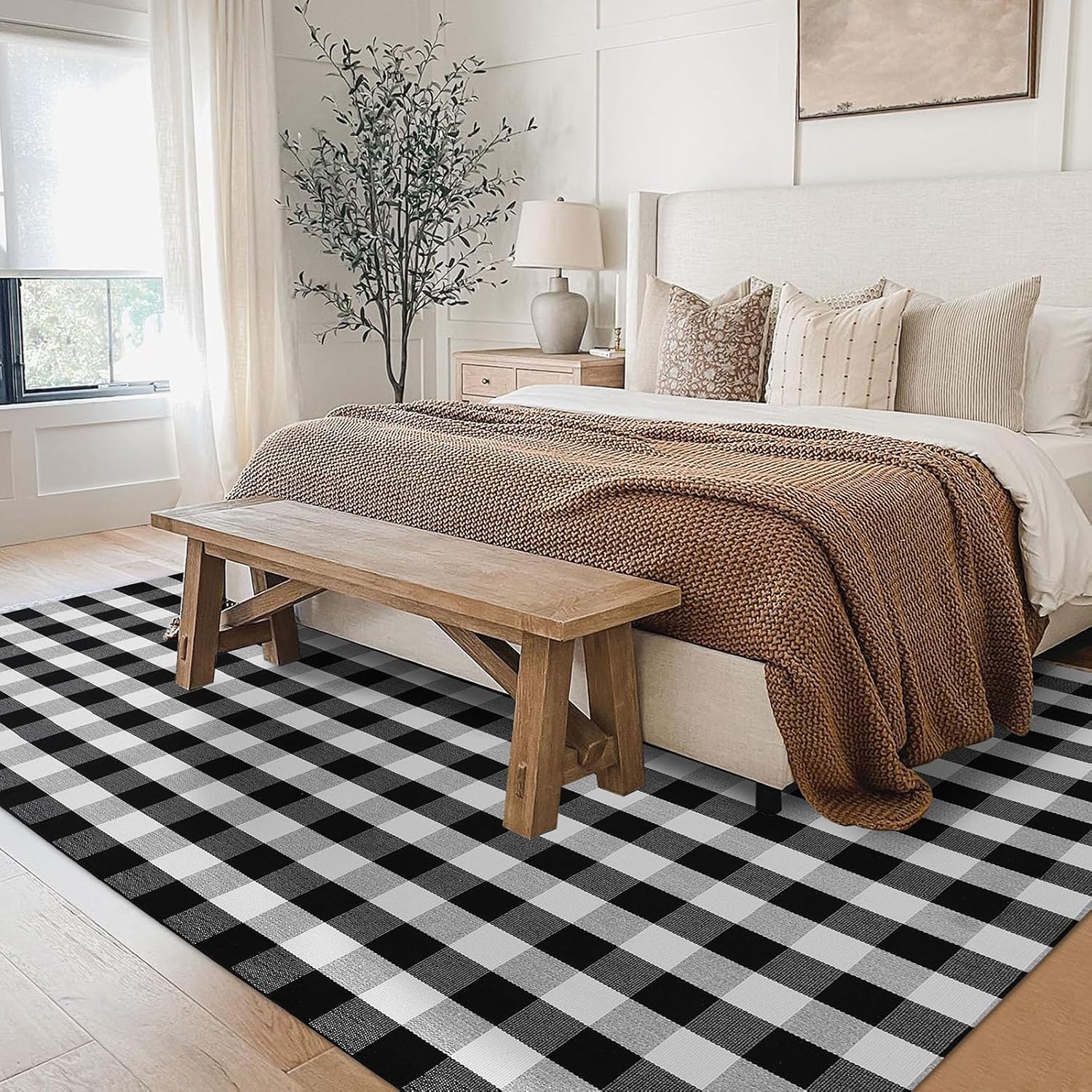 - Soft Cotton Blend Material: This buffalo plaid rug is made from 0.23 inches thick cotton blend fabric, offering excellent water absorption, breathability, and durability