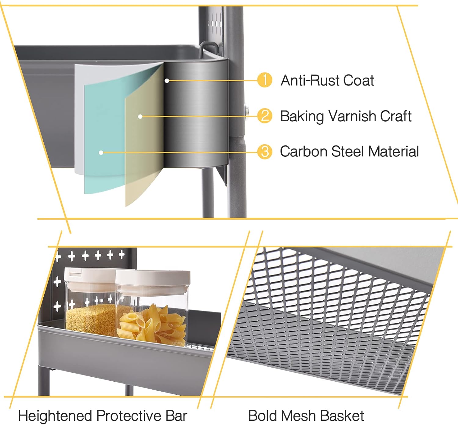 - 💦EXPLORE THE UTILITY for APPLICATION | Designed for creating extra storage space, this functional storage cart is friendly for space-saving and easy transport. Not only for pantry, kitchen, livingroom, bedroom, laundry room. But also perfect for office suppliers, classroom appliace, and hosipital suppliers. The side pegboards are effective to hang the things you want to organize.