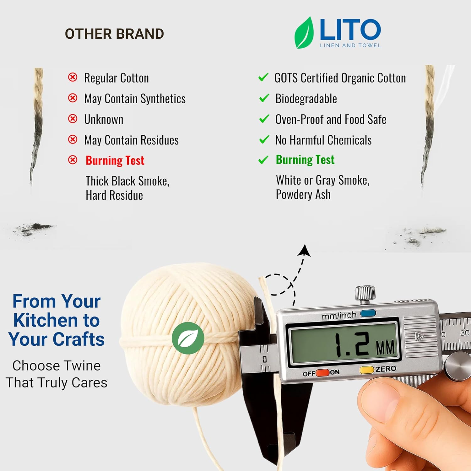 Organic Butcher’s Twine for Cooking & Trussing – 1.2mm Heavy-Duty Natural Cotton Kitchen Twine 1000 Feet – Food-Safe, Oven-Safe String for Meat, Turkey, Baking, & Crafts