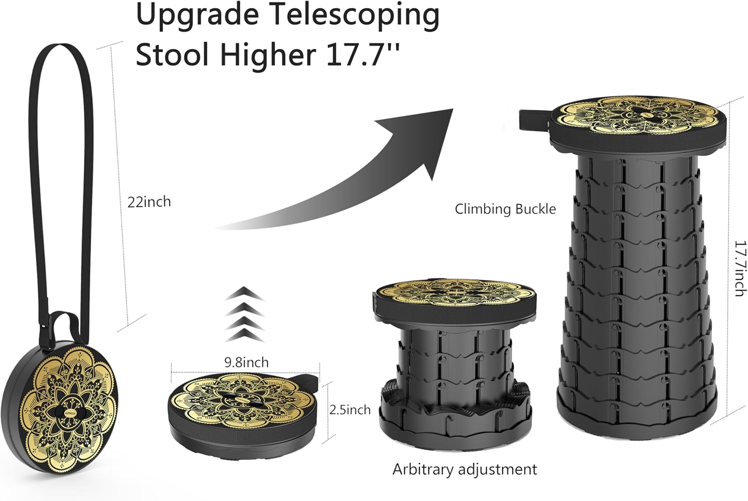 ALEVMOOM Upgraded Portable Collapsible Folding Stool Retractable Telescoping Stool for Adults Sturdy Capacity 440lbs Camping Chair for Outdoor Hiking Garden BBQ