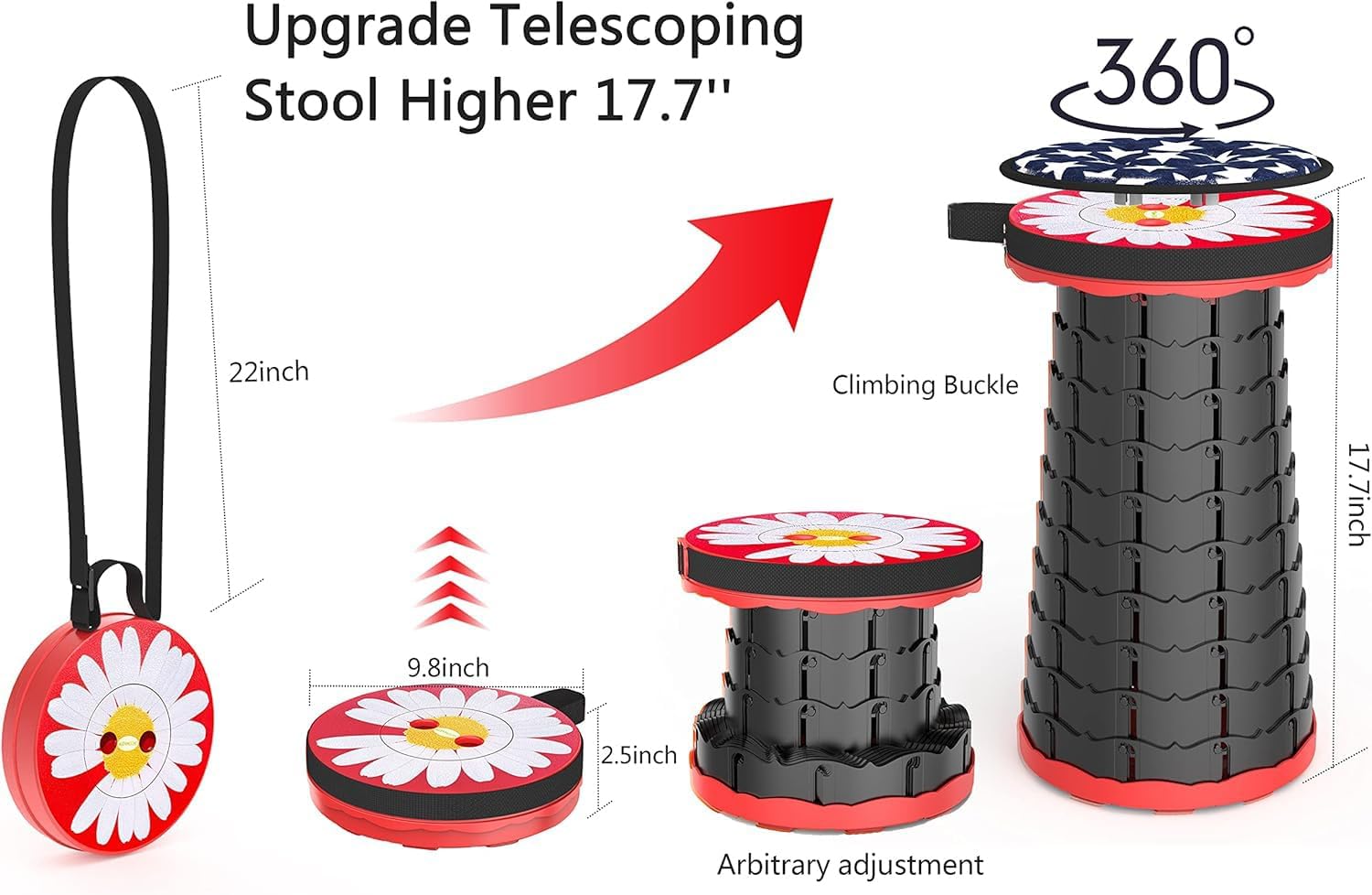 ALEVMOOM Upgraded Portable Collapsible Folding Stool with Cushion Retractable Telescoping Stool for Adults Sturdy Capacity 550lbs Camping Chair for Outdoor Hiking Garden BBQ with Bag