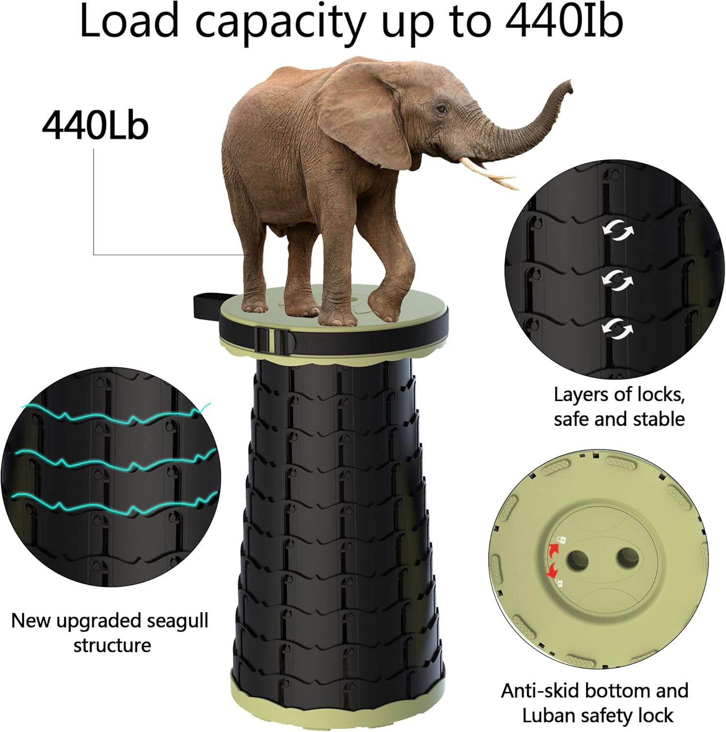 - 【SAFE and STABLE】 Made of environmentally friendly materials, cylindrical structure, tight connection buckles and non-slip base to ensure the stability of the folding stool, providing a safe and comfortable environment for sitting. The maximum load capacity is up to 440 pounds! It's a ideal choice both indoors and outdoors.