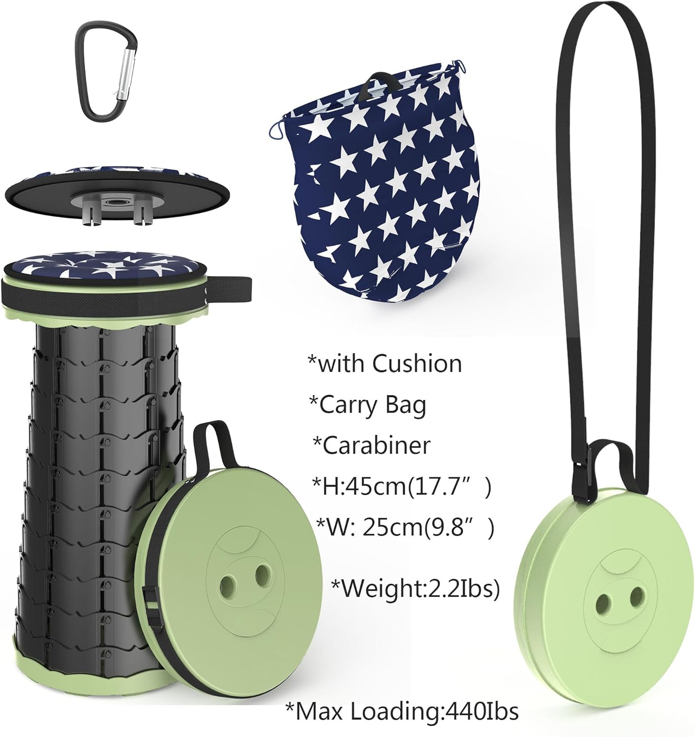 ALEVMOOM Upgraded Folding Stool with Cushion,Portable Collapsible Retractable Stool,Outdoor Chair,Yet More Sturdy Load Capacity 440lbs for Camping Garden Fishing Hiking BBQ with Carry Bag