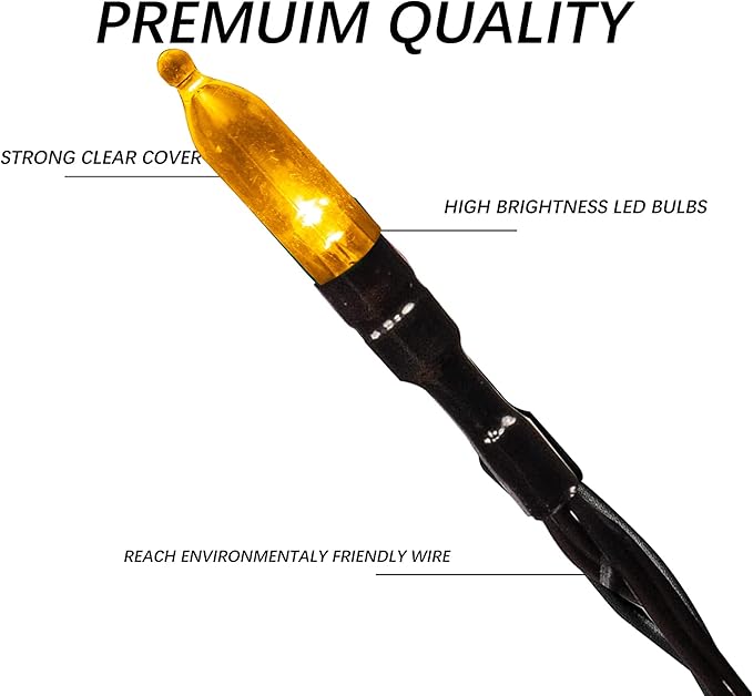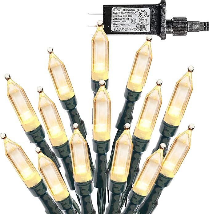 - 200 LED Outdoor Indoor Christmas Lights: Dazzle Bright mini string lights has 200 LED bright bulbs. The Christmas lights has super long 10 FT leading wire, and the light string is 65 FT, total length is 75 FT, the bulb spacing is 3.9 inch. The plug in string light is easy to use and hanging, emit the bright warm white light and bring the warm and soft festival ambiance to your home, you will be impressed by this charming lights.