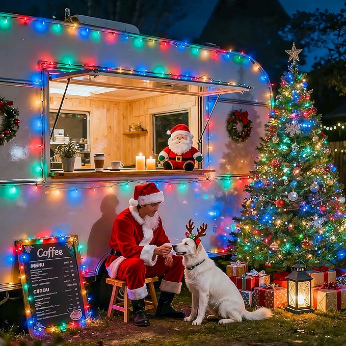 - 【Waterproof & Widely Use Christmas Tree Lights】The Multicolor Christmas tree lights have a high waterproof rating of IP44, can withstand the impact of rain (as long as the plug is protected), very suitable for indoor and outdoor decoration. Hanging them and your Christmas, Halloween, wedding, party, bedroom, garden, or balcony will be the brightest star in the night sky. Such magic outdoor string lights, don't you want to own them?
