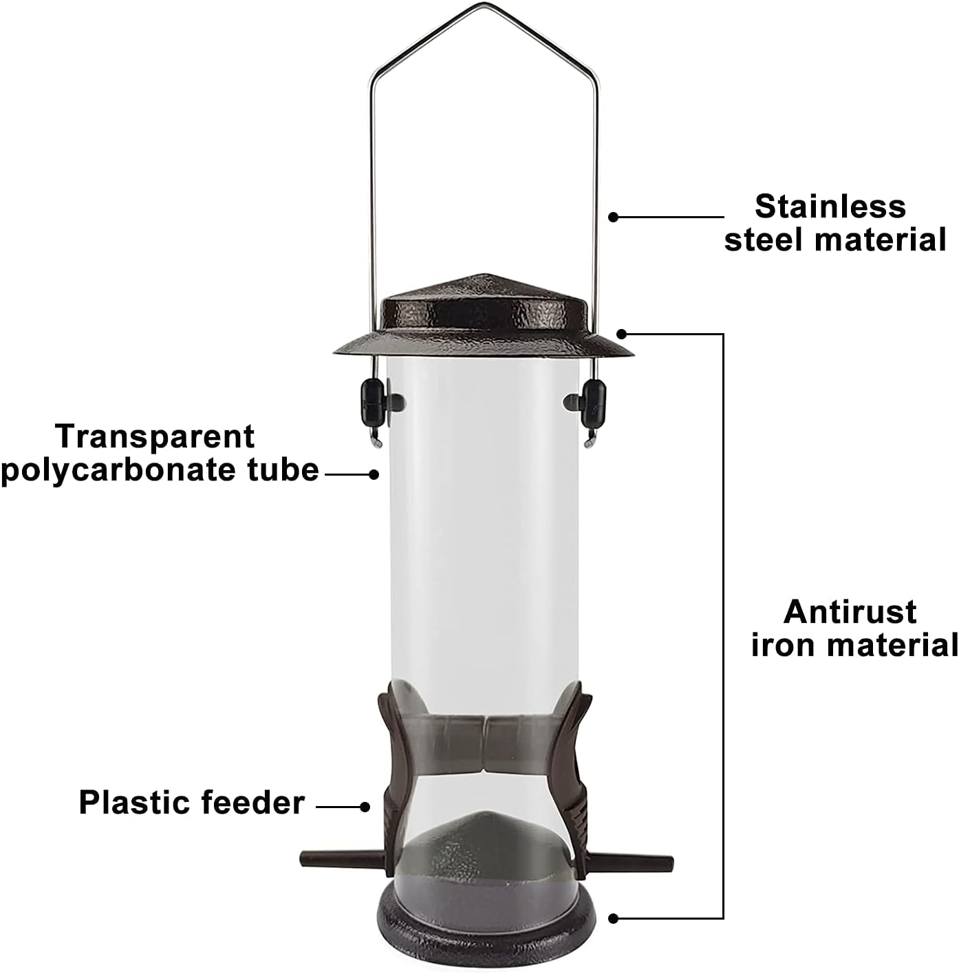 - WARRANTY & ENTERTAINING WILD BIRDFEEDER:Tube Bird feeder are superb gift idea for nature lover. Watch wild birds eating from this modern and elegant bird feeder and feel closer to nature with your family and friends. MIXXIDEA has offered customers premium metal bird seed feeders for many years. If you have any questions, please contact us in time, we will give you a solution within 24 hours. The quality of product is up to the mark and customer satisfaction is our achievement