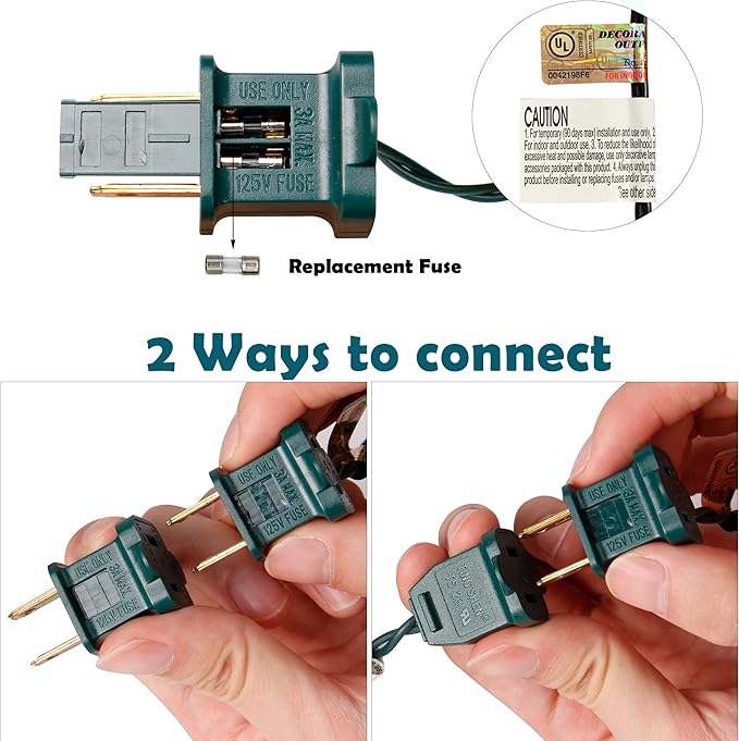 - End-to-end Connectable: Each set comes with end-to-end plug, connect up to 4 sets (600 lights) together, expandable up to a longer 132ft, allow you to decorate your lighting area with the desired length. High quality UL certified products ensure the safety of you and your family.