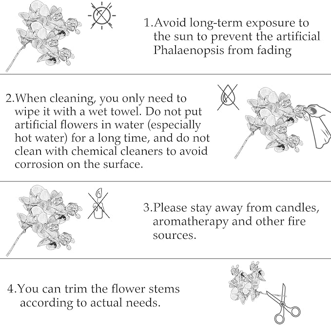 - Easy to install: each phalaenopsis is equipped with 2 pieces suction cups, which can firmly attach the phalaenopsis to the wall of the fish tank or other aquatic, reptile or amphibian habitat; If you want to adjust the plant, just move the suction cup to other place; And the branches of the phalaenopsis are very long, you can trim them according to your actual needs; It is recommended that the product be washed with water