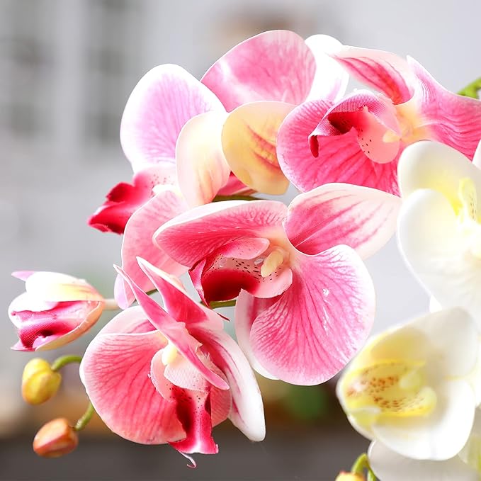- Package includes: you will receive 2 pieces artificial phalaenopsis in different colors, with 4 pieces suction cups; The total length of the phalaenopsis is 27.5 inches, which is helpful for you to adjust it according to your needs; These artificial phalaenopsis not only can decorate your glass container, but also make your pets feel like living in a vibrant natural habitat
