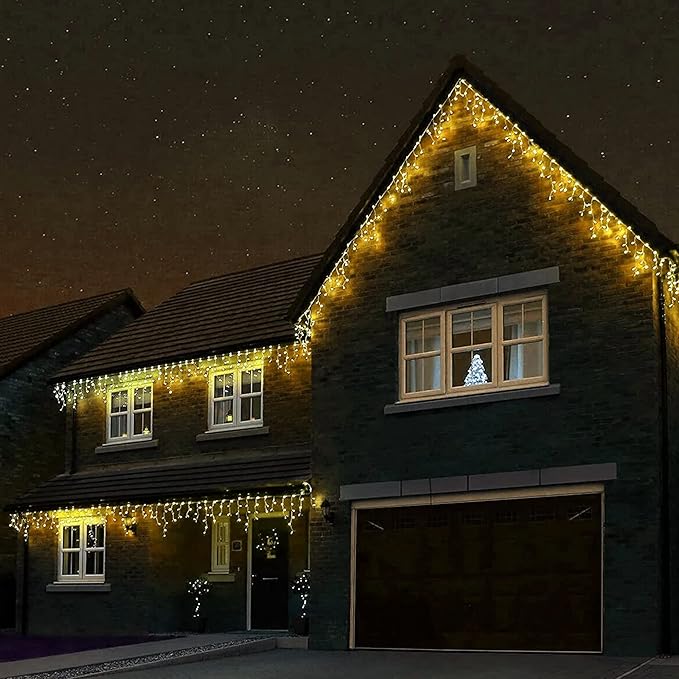- End to End connect: Christmas fairy drop icicle light with 360 LED bulbs, can connect up to 3 light strings, connect according to the size of the scene you need to decorate, to meet the needs of various venue decorations to the greatest extent.