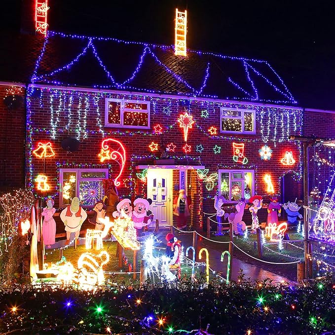 - Waterproof for Indoor & Outdoor Decoration perfect ourdoor lights - IP55 rated waterproof. Make it perfect choice for ourdoor/indoor decoration, like party/wedding/Christmas/Halloween/festivals/front door/porch/patio/garden/Christmas tree/yard/canopy/balcony/lawn/Fence/Tree/Roof/Deck and so on.