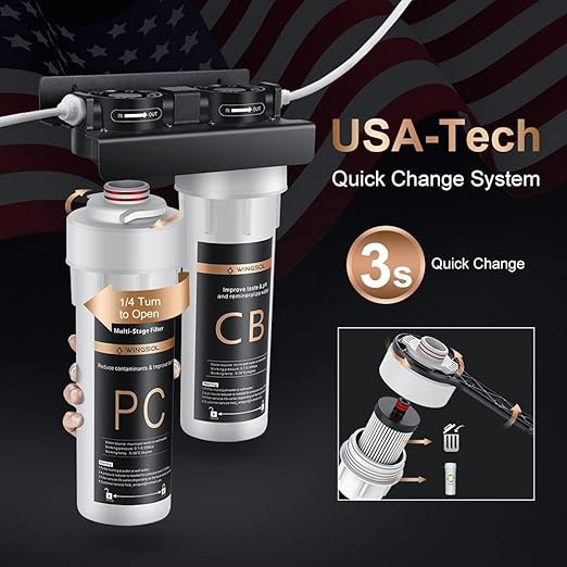 - [Filter Replacement & Water Flow]: 1.5GPM@60psi; 6-12 months in average (Filter life depends on the local water quality); replacement filter cartridge sold on Amazon: Stage 1: Model#WS-USRF-PC, long-lasting PC filter, ASIN# B09B2FGRM2; Stage 2: Model#WS-USRF-CB, multi-function filter, ASIN# B09B2FNDH7