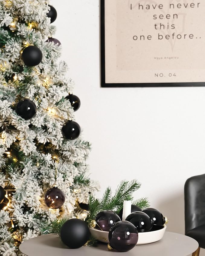 - ✪Features✪: The black christmas ornaments are done in 3 special surface finishes--matte, shiny and transparent, each glass ball has a premium texture, offering various choices for your home decoration with elegant or dark gothic estival atmosphere and embellishment.