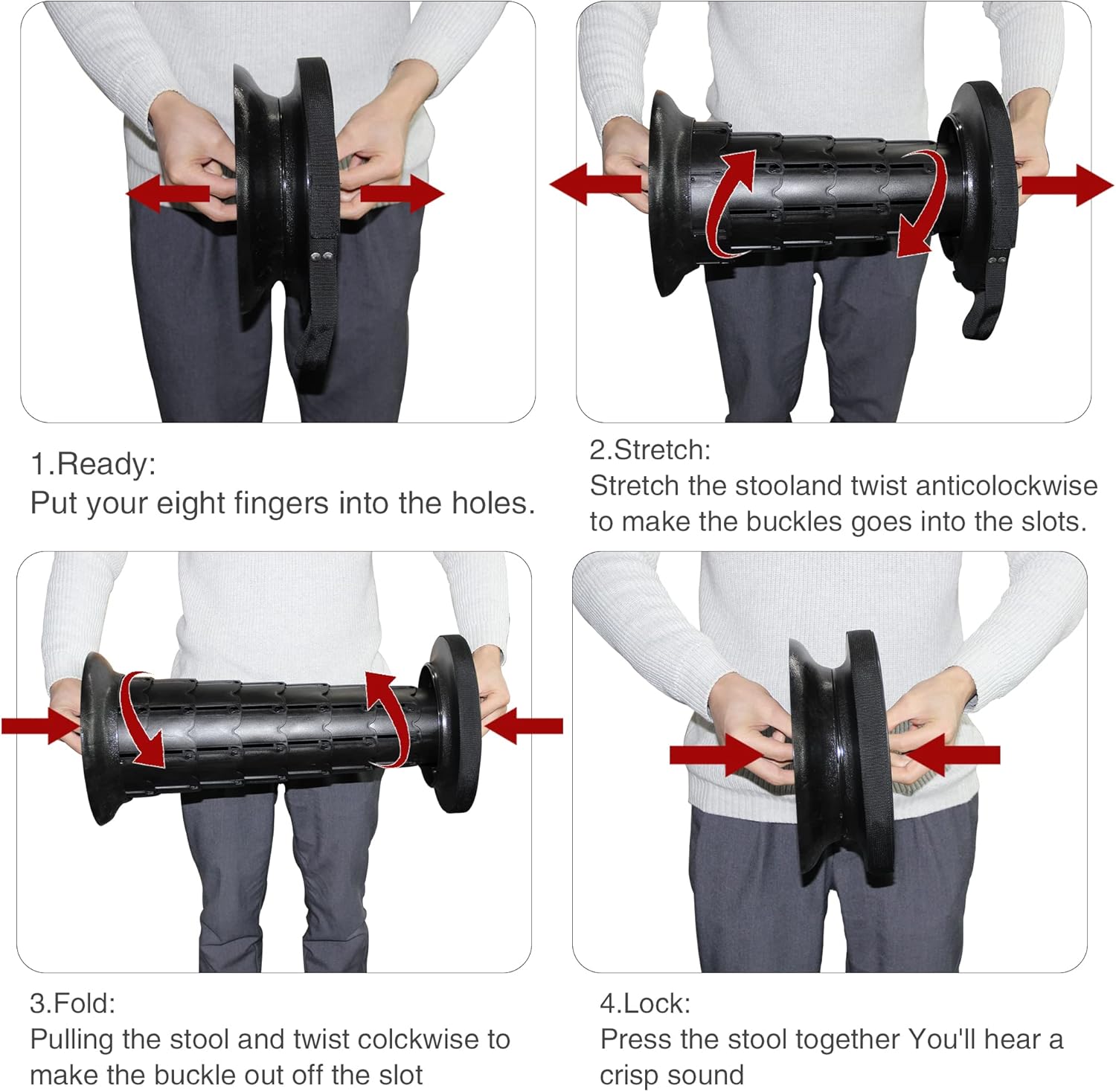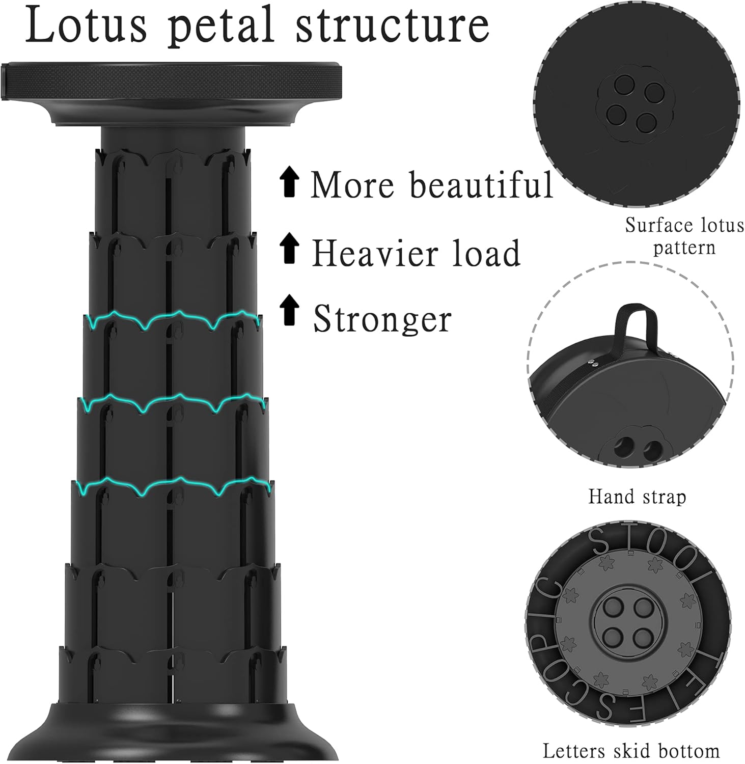 - 【Safety and High Stability】 Made of high-strength heavy duty environmental friendly material plastic PP, the cylinder shape structure, tight connecting clasps, and the non-slip base ensure the stability of collapsible stool. That provides safe and comfortable seat. The maximum load capacity is as much as 550 lbs(250kg)!
