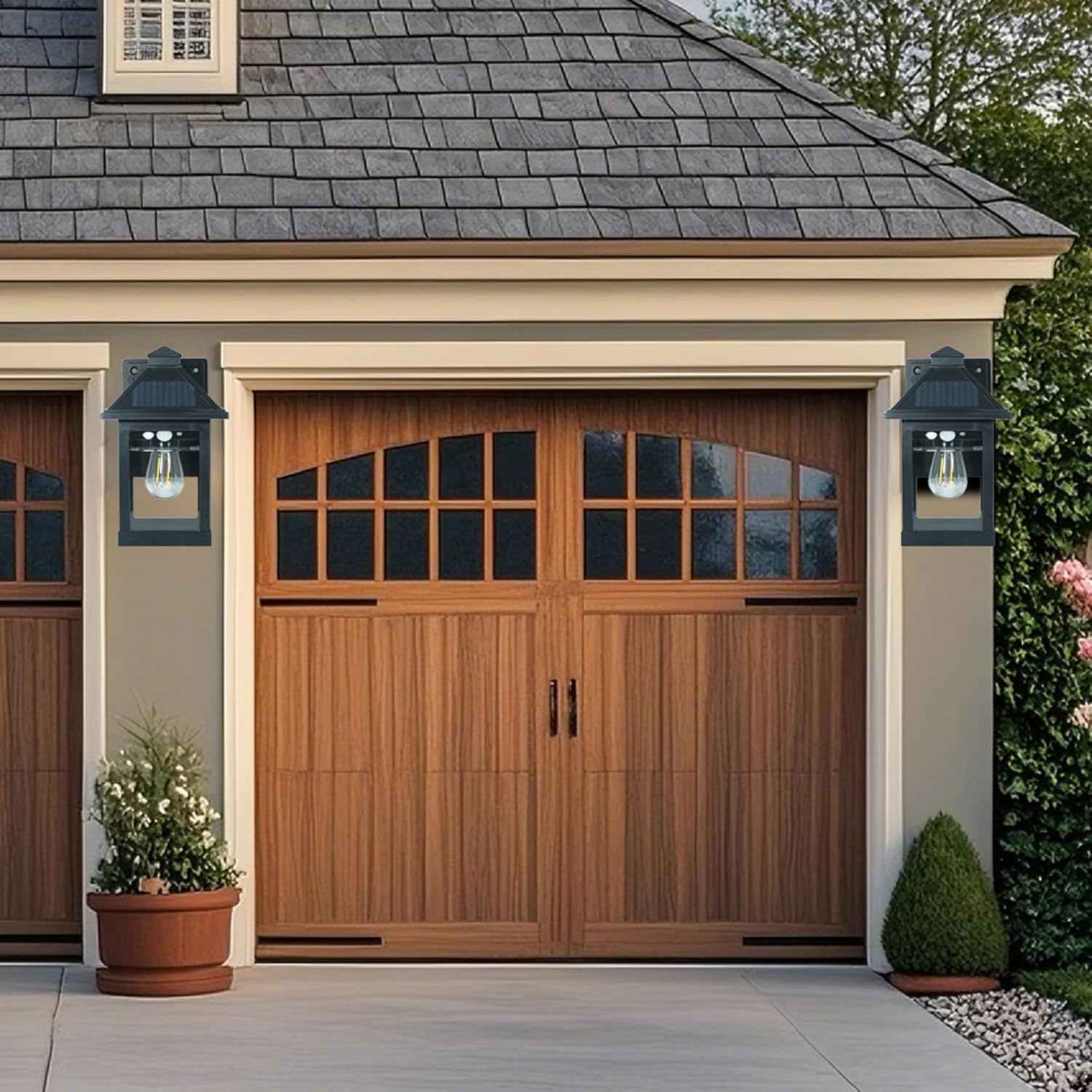 2 Pack Solar Wall Lantern Lights Outdoor Dusk to Dawn Motion Sensor Waterproof LED Wall Sconce Exterior Porch Light Fixtures Warm White, 3 Lighting Modes for Fence Patio Garage Garden Yard