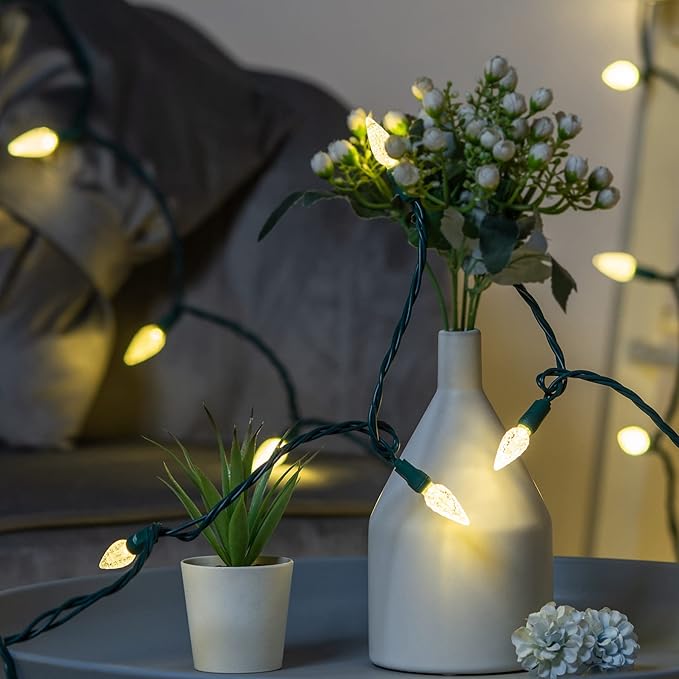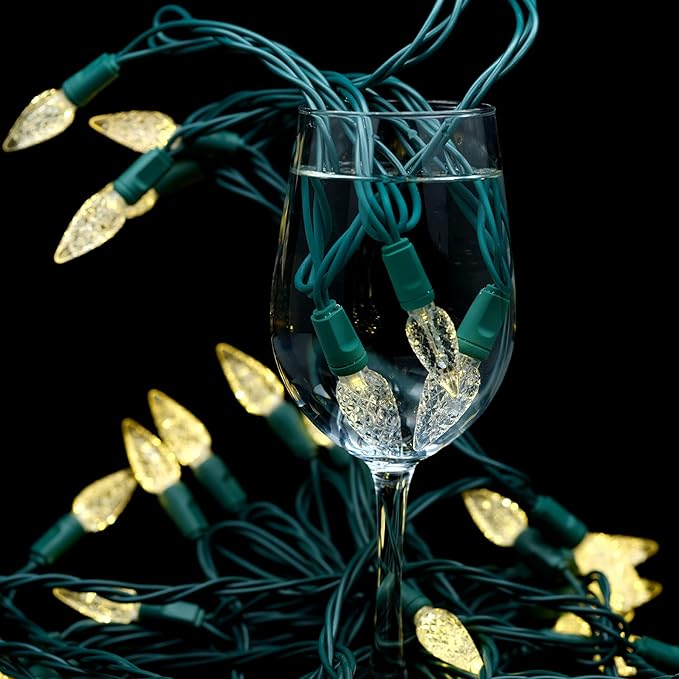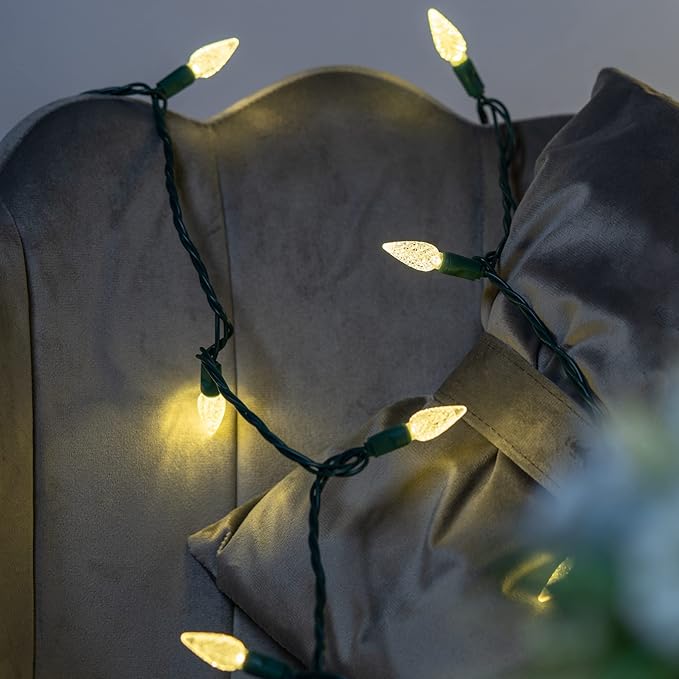 - Flicker-Free ♥ Each string light features a rectifier with full-wave rectification, guaranteeing flicker-free performance and eye protection. Enjoy a steady and pleasant lighting atmosphere. C6 bulb is vast in illumination with a concave faceted lens that provides superior brightness by dispersing light uniformly in all directions.