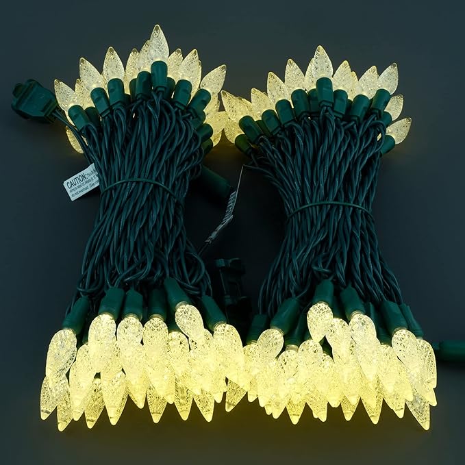 YULETIME Warm White One-Piece C6 Strawberry Christmas Lights 140 Count 71 Feet, 2 Sets 70 LED 35.5 ft High Waterproof UL Certified String Light (Warm White)