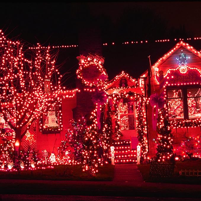 - Connectable Christmas Lights: 66ft Christmas string lights with 200 red individual LED bulbs. Each Christmas lights has end-to-end connection, you can connect up to 4 sets together to illuminate a wider range.